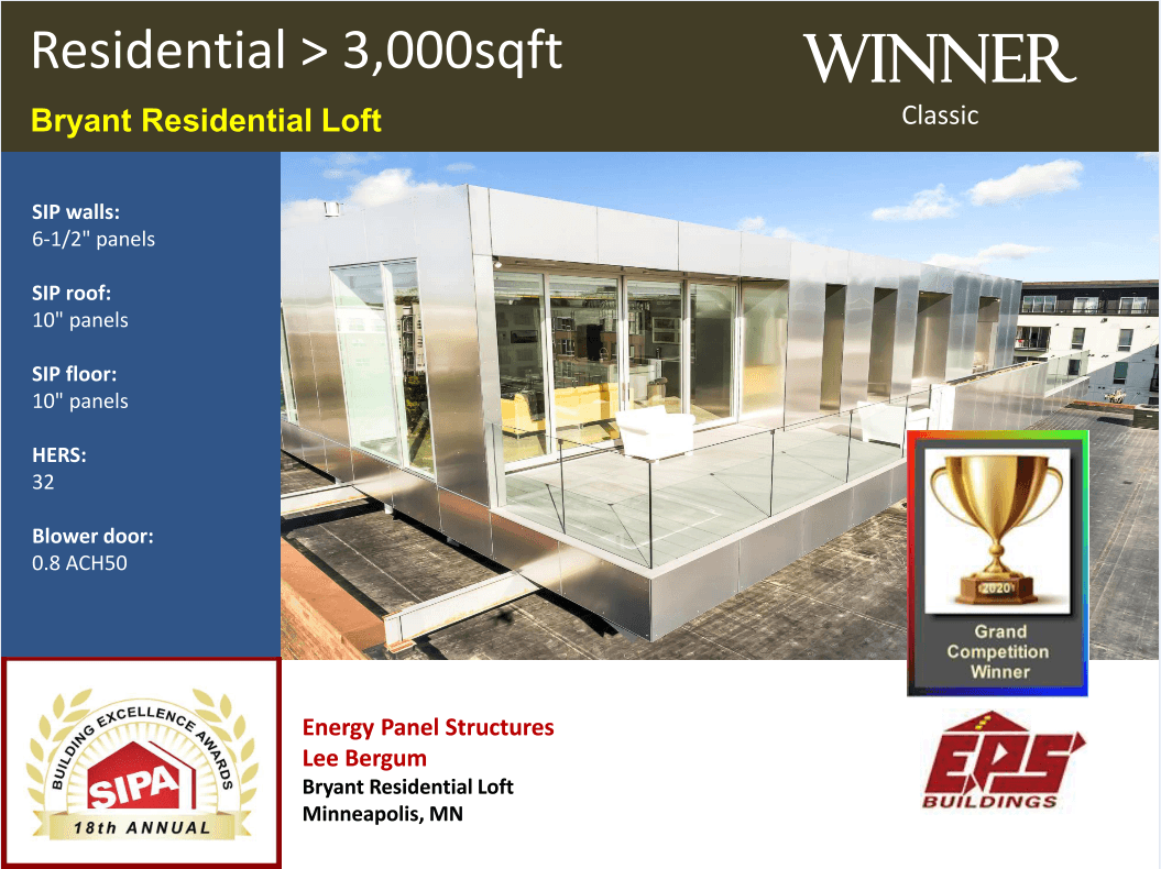 This project was named the 2020 SIPA Association Overall Grand Prize Recipient, recognizing excellence in structural insulated panel construction and innovation in design and execution.